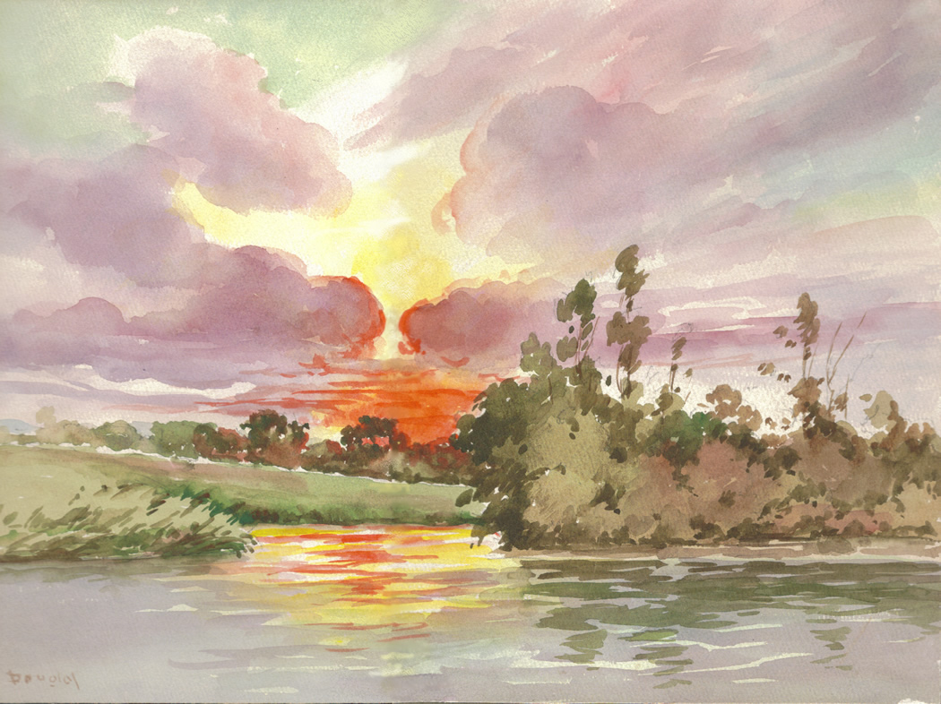 Arthur S. Douglas Collection Number 32: Sunset on the Pawtuxet Watercolor on Paper, Size 9.5" X 13"