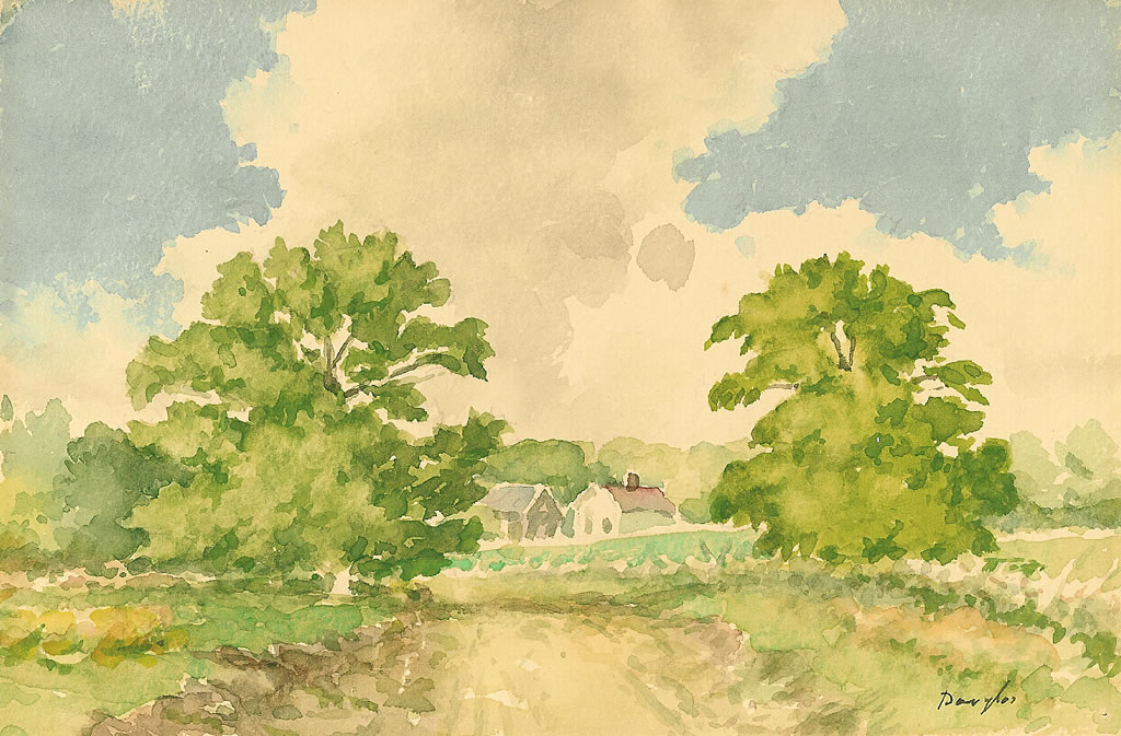 Arthur S. Douglas Collection Number 16: Twin Tree Road Watercolor on Paper, Size 6" X 9"