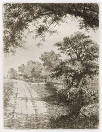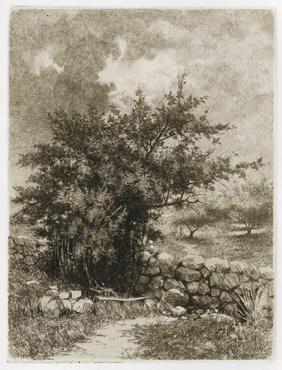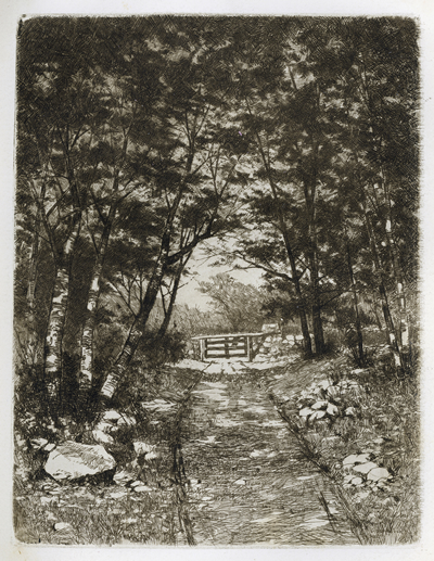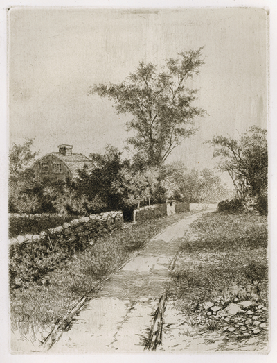 In his early years Douglas bound together these 10 etchings. This book was gifted to the Rhode Island Historical Society and is now part of their private collection. The book is entitled, Woodland Rambles, Ten Etchings of Nooks and Corners in Some Old Rhode Island Farms. These etchings are not part of our Arthur Douglas Collection, but illustrate the diversity of Douglas' artistic talent.